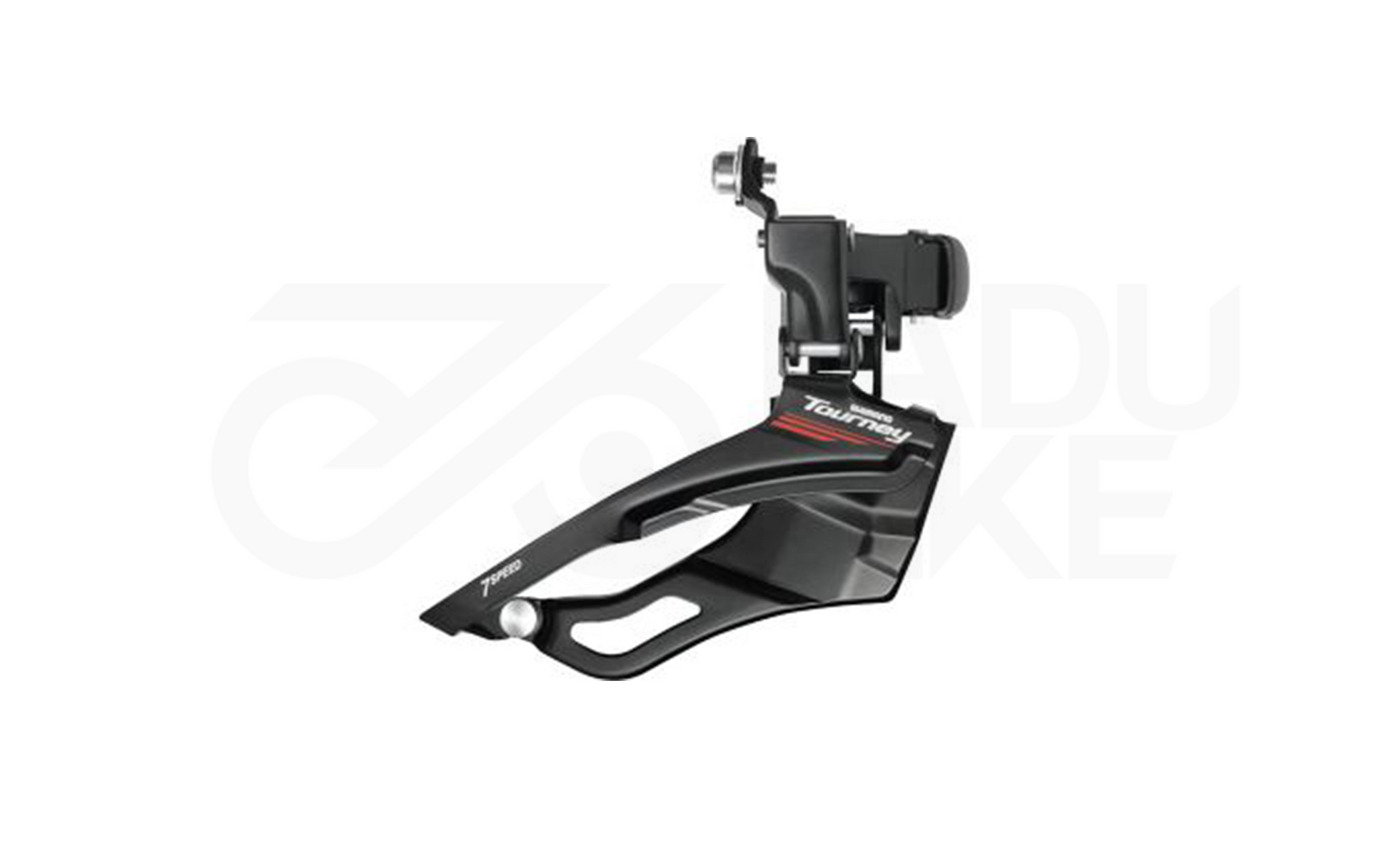 Der Shimano Tourney Umwerfer FD-A073 ist ein zuverlässiger 3x7-fach Umwerfer für Trekkingräder. Er wurde für Triple-Kurbeln mit einem größten Kettenblatt von bis zu 51 Zähnen entwickelt und eignet sich ideal für vielseitige Einsätze im Stadt- und Tourenbereich. Der Umwerfer in schwarzer Ausführung wird per Schelle mit einem Durchmesser von 34,9 mm montiert und nutzt eine Down-Swing-Bauweise mit Down-Pull-Seilführung. Mit einem Kettenstrebenwinkel von 63–66° bietet er präzise Schaltvorgänge und hohe Stabilität – perfekt für langlebige und zuverlässige Performance auf Trekkingbikes.
