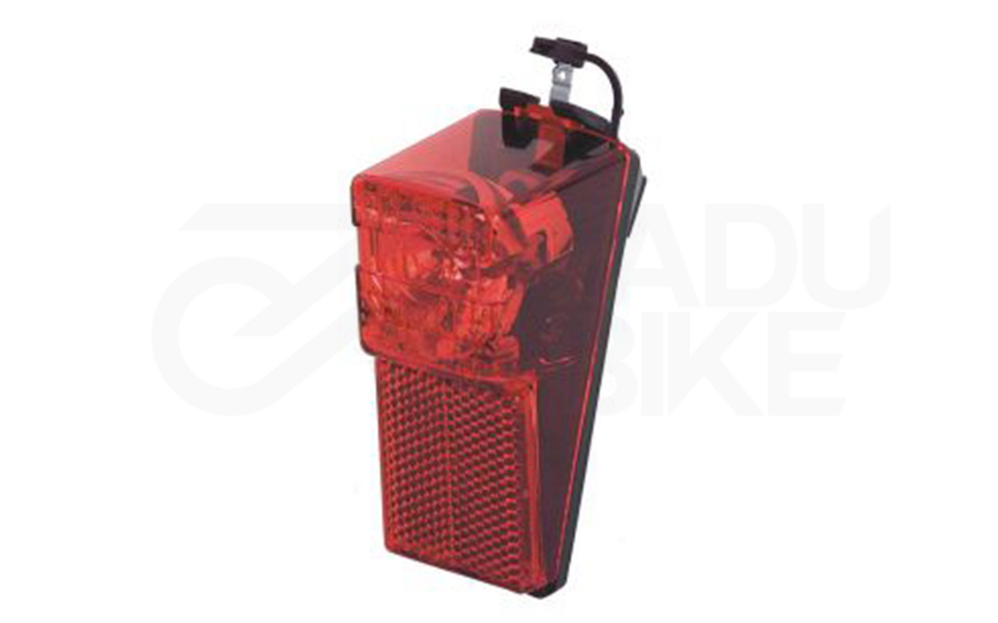 Dynamogestütztes Rücklicht für Schutzblechbefestigung, aus schlagfestemKunststoff, mit Reflektor, ohne Kabel.