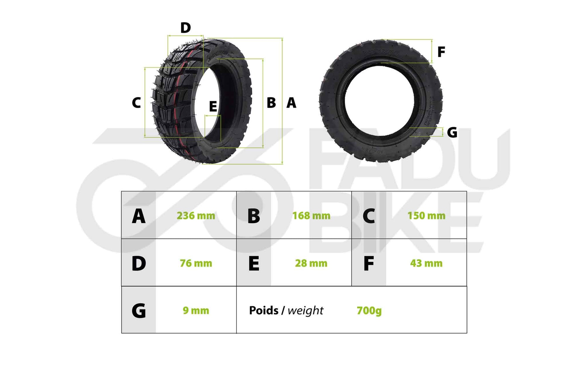 Der Offroad Tubeless Reifen 80/65-6 (255×80) ist für leistungsstarke E-Scooter mit 10-Zoll-Felgen konzipiert und bietet eine zuverlässige Kombination aus Stabilität, Grip und Haltbarkeit.