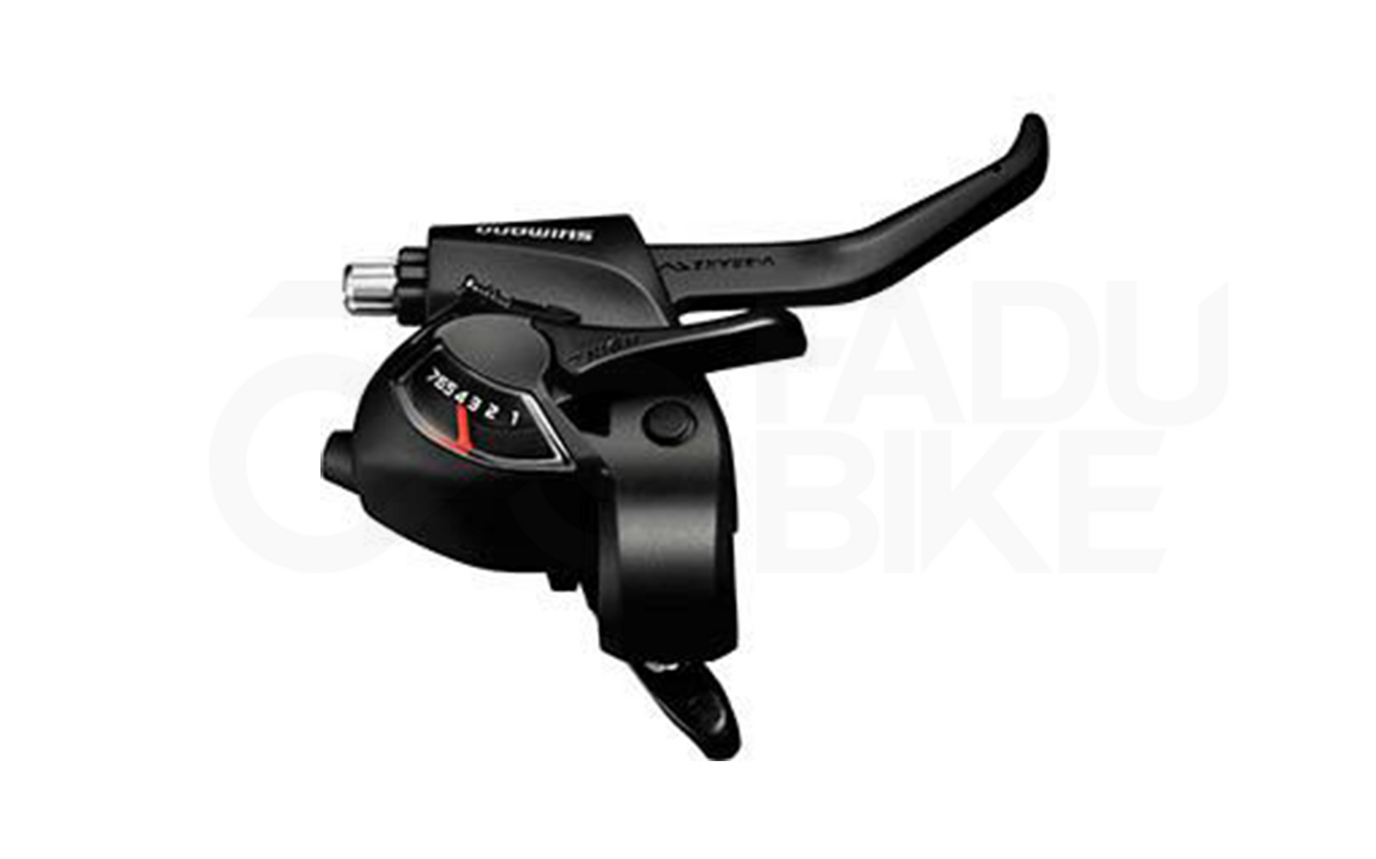Der rechte Shimano Schalt-Bremshebel ST-EF41-6R aus der Tourney TX Gruppe kombiniert einen mechanischen Schalthebel mit einer zuverlässigen Bremshebel-Einheit und ist speziell für Mountainbikes konzipiert. Der EZ-Fire Plus Mechanismus ermöglicht schnelle und intuitive 6-fach Gangwechsel, während die robuste Aluminiumkonstruktion für Langlebigkeit und stabile Bremsleistung sorgt. Der Hebel wird per Schelle am Lenker montiert und kommt in einer klassischen schwarzen Ausführung – ideal für MTB-Fahrer, die eine praktische Kombilösung mit bewährter Shimano-Qualität suchen.