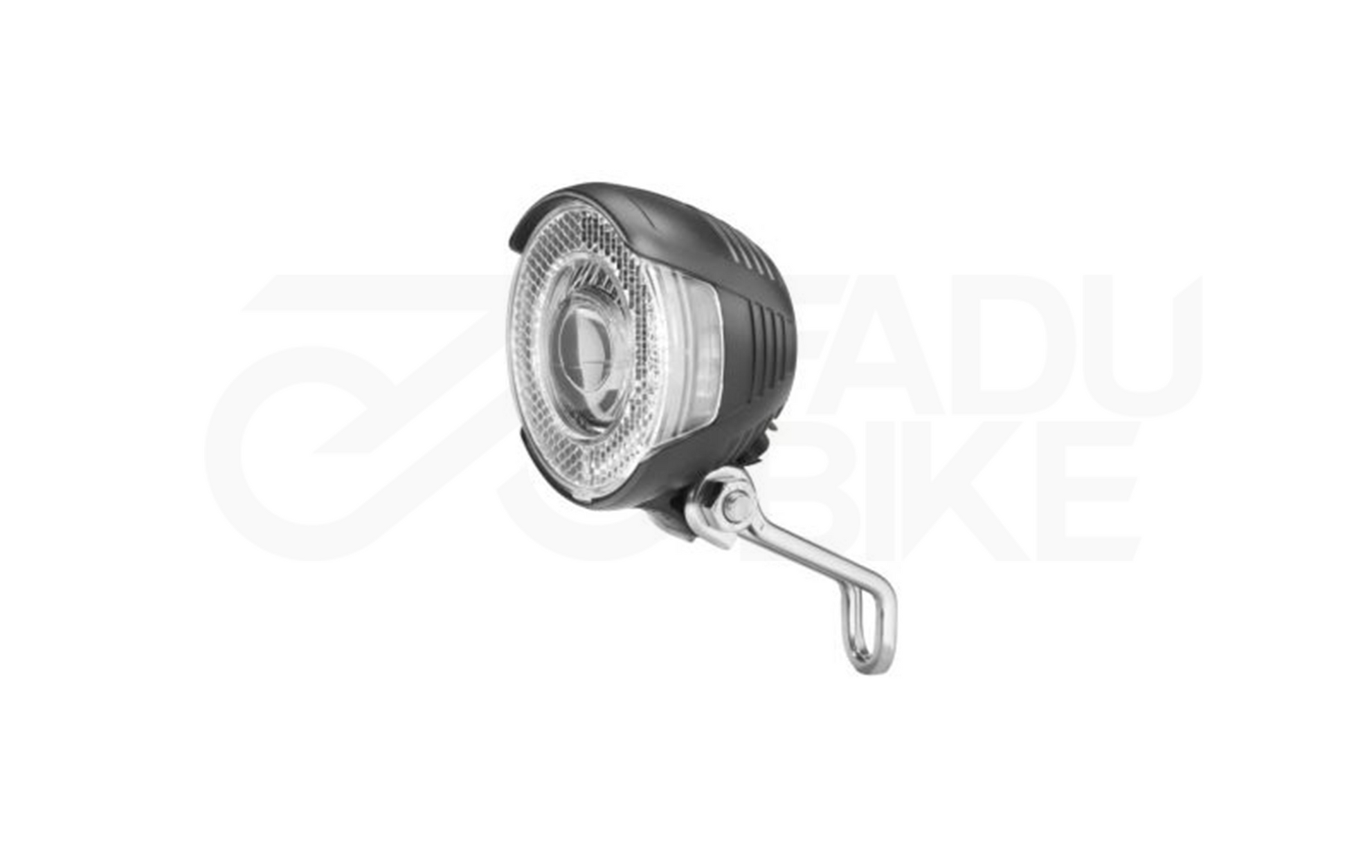 Der Busch & Müller Lumotec LYT N ist ein hochwertiger LED-Scheinwerfer mit 25 Lux Lichtstärke, speziell für den Betrieb mit Nabendynamo entwickelt. Er bietet eine gleichmäßige Ausleuchtung mit zusätzlicher Nahfeldausleuchtung für mehr Sicherheit im Stadtverkehr. Der Scheinwerfer verfügt über einen integrierten Front-Rückstrahler sowie einen praktischen EIN/AUS-Schalter. Das schwarze Gehäuse besteht aus robustem Kunststoff und ist langlebig, leicht und wetterbeständig – ideal für City- und Trekkingräder.