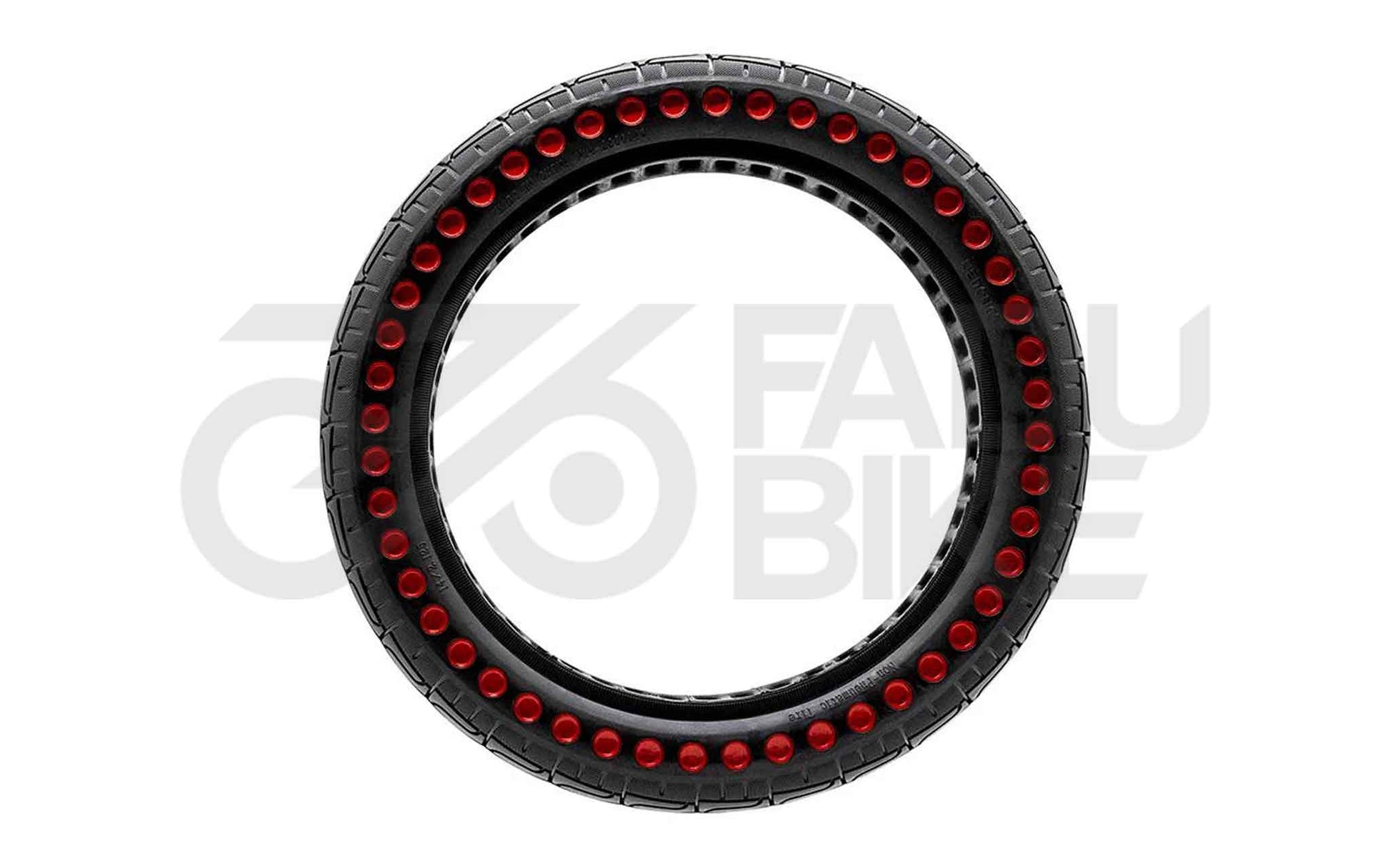 Die roten Markierungspunkte verleihen dem Reifen eine dezente, sportliche Optik. Ideal für Fahrer, die einen wartungsfreien, langlebigen und hochkomfortablen Vollgummi-Reifen für größere E-Scooter suchen.